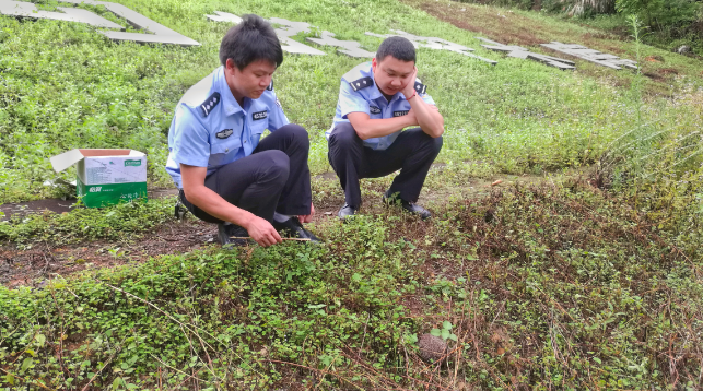 621,荔浦县森林公安局接到群众报案,报案人称其在青山镇大岭口岭上自家果厂旁发现一只小刺猬,接到报案后,民警立即出警,成功救助了小刺猬,经查看和确认该小刺猬为三有动物刺猬幼仔,无外伤。
